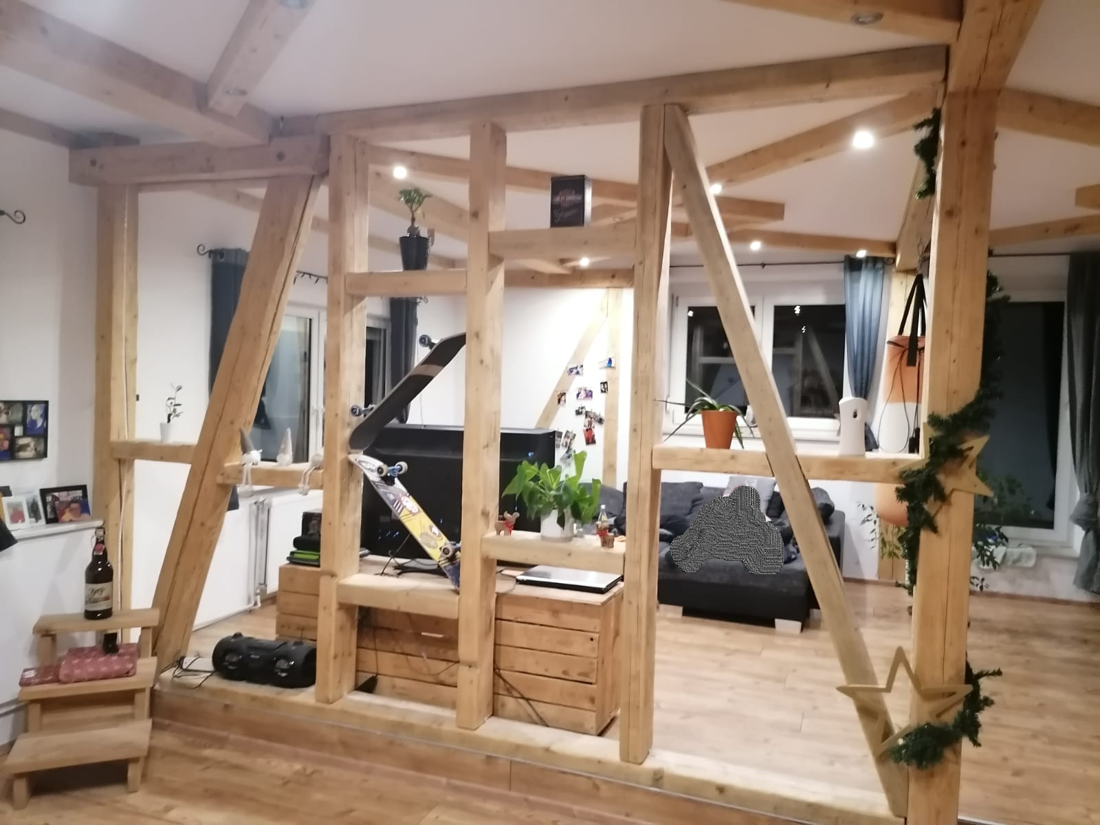 Komplettsanierung einer Dachgeschosswohnung inklusive Balkenarbeiten, Bodenarbeiten, Wände